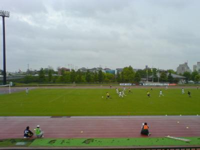 前半最初のチャンスは左利き小関のFK。これは跳ね返されるも再び小関が押し込んで先制。ゲームはジェフCペースで進みそうです。しかしそんな一瞬の隙をついて左サイドバックの鳥取28番下松選手が高精度のクロスを上げ、27番平田選手がダイビングヘッドで叩き込みます。これで鳥取が巻き返すのかなと思ったらすぐにジェフCの野沢がペナルティエリア左サイドから目の覚めるようなシュートで突き放します。うむ。素晴らしい。