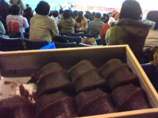 大好きな『赤福』を食べながら、日産のスタンドで観戦。