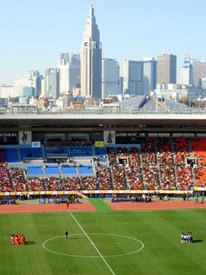 高校選手権準決勝。久し振りに霞ヶ丘のバックスタンドへ。