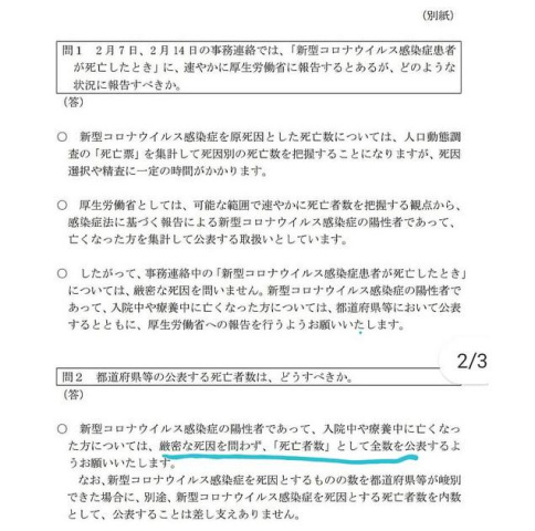 とにかく死亡者は新コロ陽性者にしてくれという文書通達。
