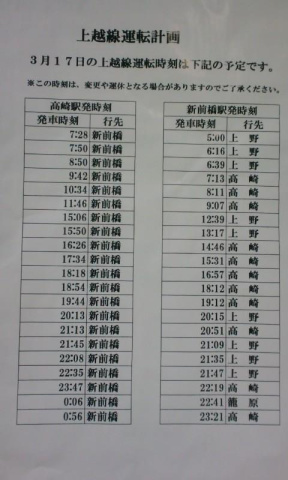 新幹線は通常通り運転していますが、高崎駅から先の電車は淋しいものになっています。