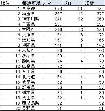 訂正 県別ランキング(JTAランキングシステム登録者数)