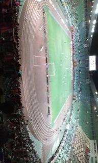 そして、ガンジーさんはメインスタンド中央上段の選手席に陣取っていました。