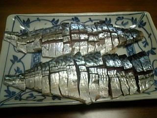 干物は濃い目の塩水に1時間程浸しまして取り出したら良く水気を取り後は網の中で半日くらい干すだけ(笑)