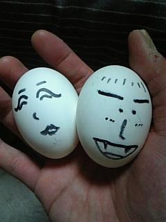 絵の書かれたタマゴがえらいツボに入った様で呆れ返った様子でなぜか嬉しそうに喜んでる嫁がそこにいましたo(^-^)o