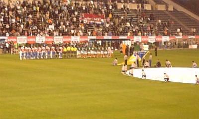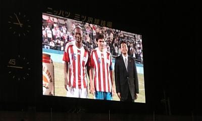 試合終了後の表彰式のひとコマですが、良く見るとパラグアイユニを着た選手が二人…。
