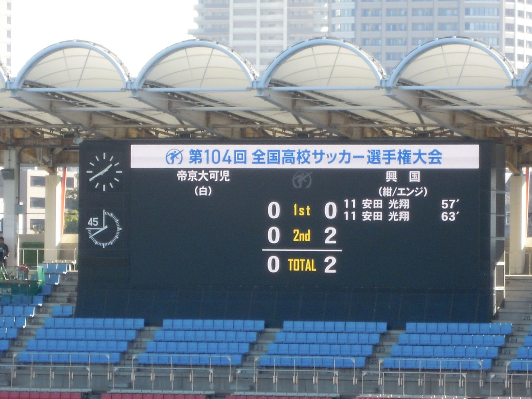 前半はほぼ互角だったが、後半興國が2点入れて初戦突破。