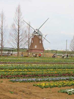 風車のあるところには、”ビオラ”という花が、真っ盛りです。