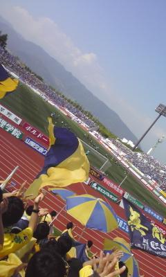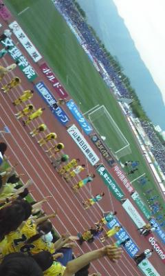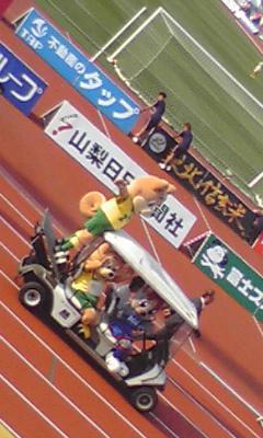 ちなみに犬ダービー甲府の陣ということで、ジェフィユニティも小瀬に駆けつけたようです。