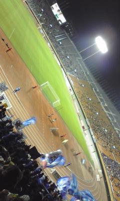 明らかに東京より多くのサポーターが駆け付けた甲府。美空ひばりの歌が原曲のアンセムが心に響く。