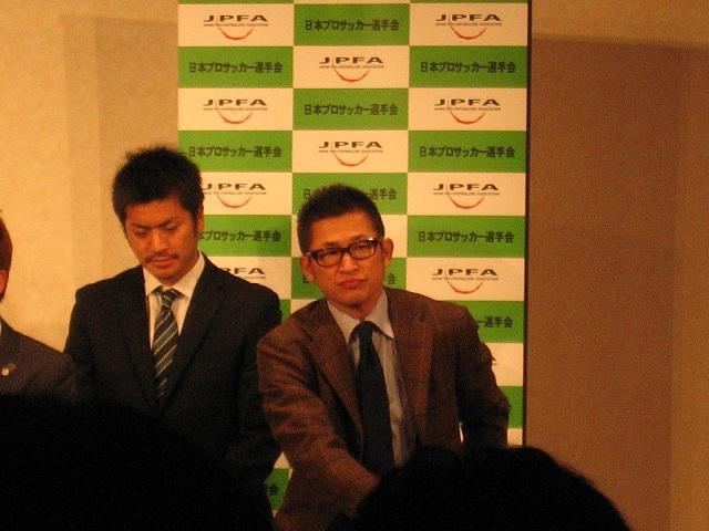 参加者は、会長の藤田俊哉選手(熊本)、副会長の山口慶選手(千葉)、監事の小宮山尊信選手(川崎)、同じく監事の大谷秀和選手(柏)、そして播戸竜二選手(C大阪)、野田恭平選手(岐阜)、三浦知良選手(横浜FC)、高原直泰選手(清水)。