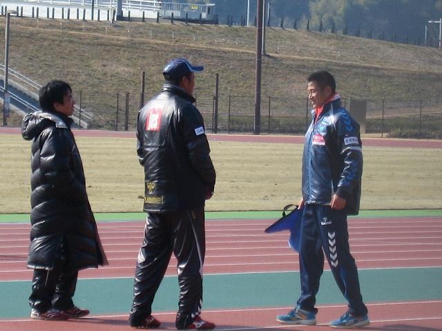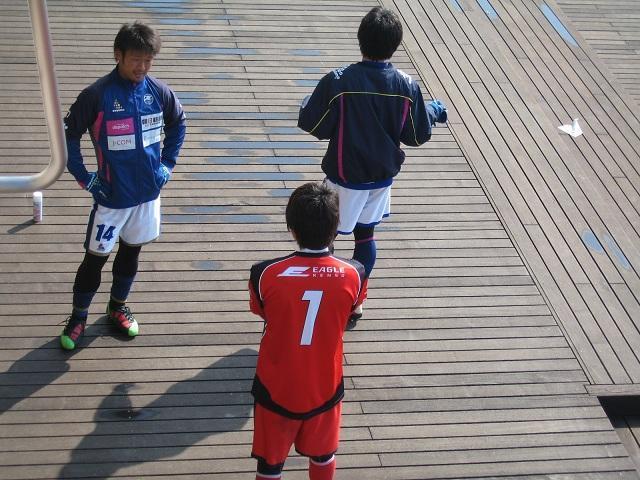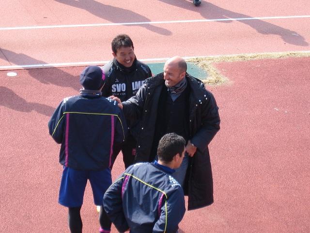 岸野監督と話し込むカズさん。43歳ですが元気にピッチを駆け回っていました。