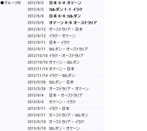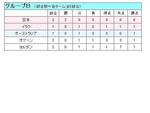 6月9日時点 アウェイ オーストラリア戦前 順位