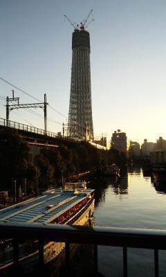 行く途中 一つ目写真 早朝 スカイツリー 朝の陽射し
