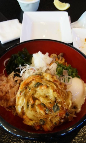 写真は、馬刺し、きのこの盛り合わせ、キムチ、ぶっかけそば