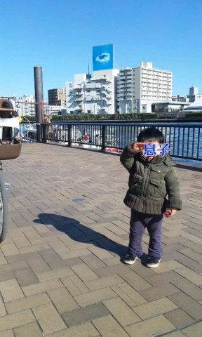 ちょっと時間あるんで息子と隅田川ナウです[e343]