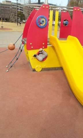 球蹴りしばらくしてると あっ遊具発見!?ダッシュで遊具の方へ