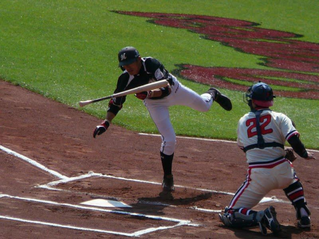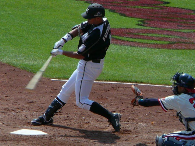 2回に先制の一打を打った福浦 内角の球をうまくさばき打った瞬間スタンドインがわかりました