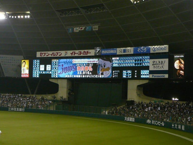今日は関東でも夏休み最後の週末の土曜日の試合+ロッテビジター応援デーと薄暮ナイターで、西武ドームでも満員御礼でした