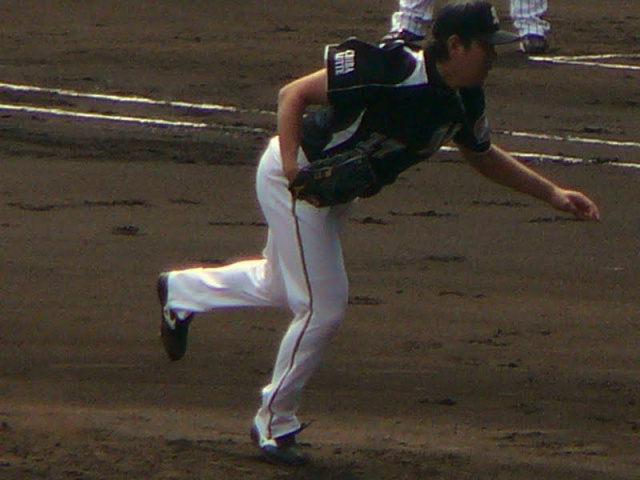 西岡初球からバントヒットで一塁へヘッドスライディングで負傷し何度も治療で…
