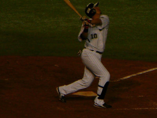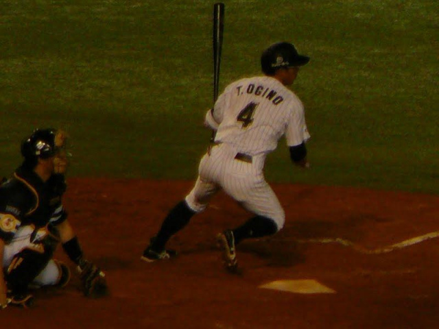 最近打撃下降気味大松・・なぜか自打球よけをつけてます・・ボールが当たらないのに
