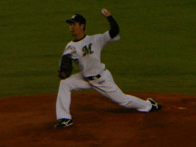 ロッテ先発は古谷今年もゆったりとしたフォームからキレのあるストレートを投げ緩急をつけます