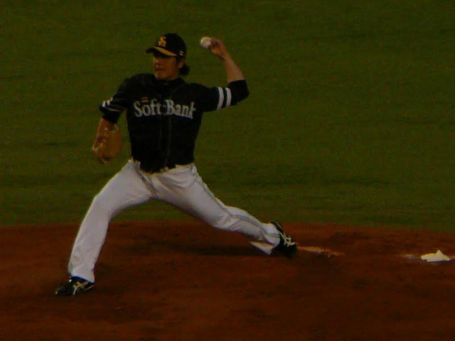 ソフトバンク先発は帆足ちょっとサイド気味に投げ方変えた?丁寧に低目、コースをつく投球で打たせて取ります