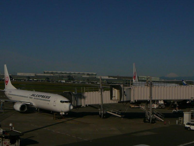 朝の羽田1ターミナルからは富士山が綺麗にみえていました
