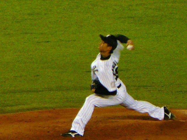 低目にお辞儀をする球が多くアブレイユに四球を与えます小谷野を三振に切って取り結果オーライに