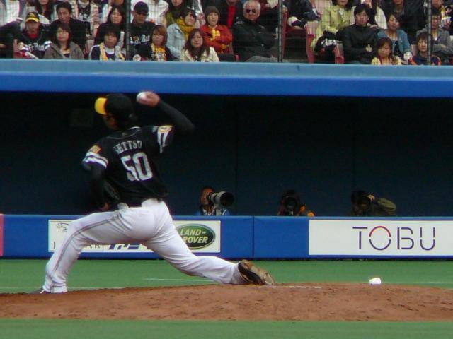 しかし5回低めだが少し中寄りに入った球をうまく多村にすくい上げられ被弾・・されたあと不運な内野安打をふくめ無死満塁でスイッチオンに・・・山崎・川崎を連続三振にした後2アウトから本多に走者一掃3塁打を放たれ敗戦投手・・このとき2死満塁本多でも外野が浅いと思ったんですが案の定センターの頭の上を越えてしまいました。