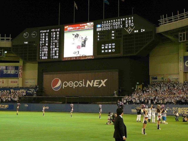 最終回按配?バイナムにヒットを打たれ一打同点で代打T−岡田は打ち取りますが喜田剛には高め野たまをライト頭上を越えてフェンス直撃あと50cm飛んだら本塁打の危機一髪で同点ななりますが