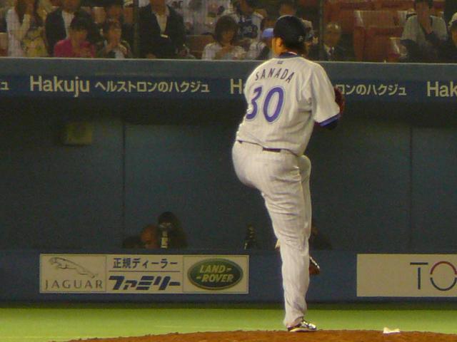 6回からは横浜去年途中トレードで巨人から移籍の真田が登板