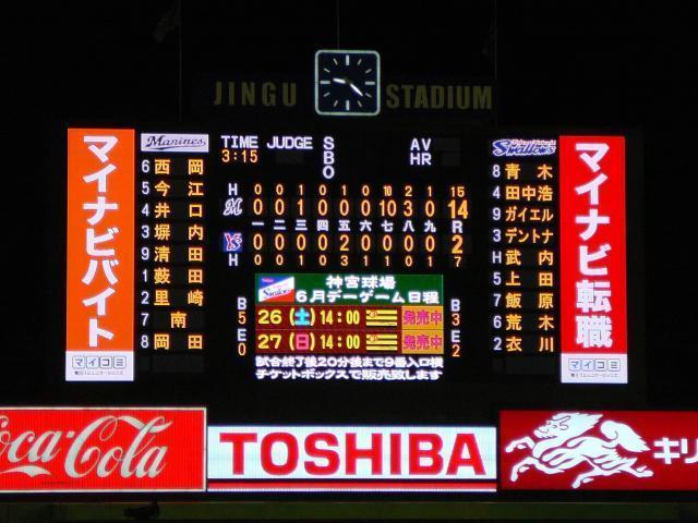 ヤクルトは4月以来の連勝をかけ村中が先発でした序盤はボール先行でもうまく散っているようでロッテ打線に的を絞らせない投球のようでエラーがらみで先制するも逆転され・・・のびのびストライク先行で尻上がりに調子をよく投げてきて嫌な流れでした。
