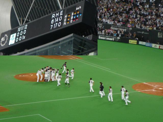 ・・・併殺崩れの間に2点差長打警戒の外野の前に落ち1点差里崎のポテンヒットで同点橋本将で逆転したかったけど・・・9回の裏へいき延長へ