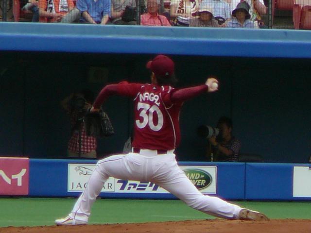 楽天先発は永井、低めに丁寧にコントロールされ変化球も低めにキレてコントロールされゴロで打ち取る投球をされていました。