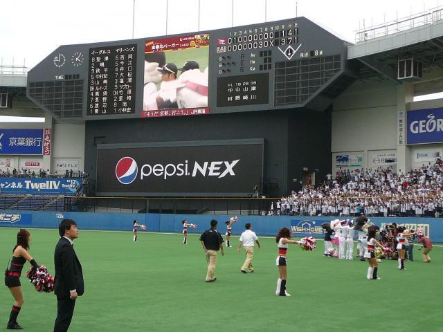 7回に2死2.3塁・・ここまで何度となくチャンスをつぶしてきたロッテ、またつぶすかと思ったが何度目かの正直で今江がしぶとくライト前に落とす逆転タイムリーで今日もマーフィーがマウンドを降りた回に打線が爆発します。