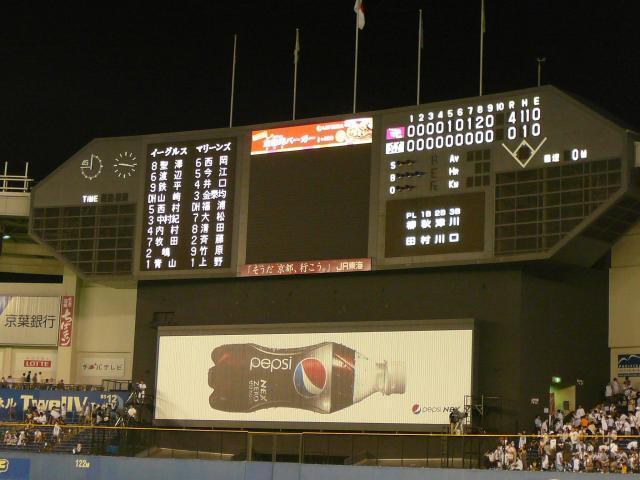 ロッテ先発は成瀬低めにコントロールされ安心できる投球内容ですしかし又々 伏兵に一発を打たれたようです。第25号くらいかなぁ?(26号でした)ホントに失投が多いです。7回もヒットの後ワイルドピッチで得点圏に進られその後に嶋にうまく右にうまくおっつけられ2点目3点目も左中間の奥を破ったように見えましたが大松の返球がダイレクトに返球されたのがわるいのか3塁までランナーはいかれるし・・連携がももう少し良かったらもう1.2点は取られて居ませんでした。