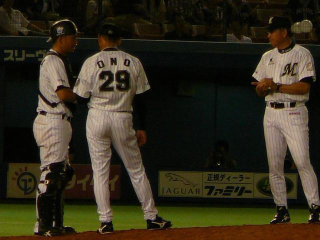 7回途中からロッテはマーフィをあきらめ今日一軍登録の小野へスイッチ