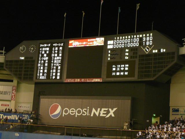 3連勝で戻ってきたロッテ今日の先発は真のエース、マーフィー初回からエラーがつかないヒットで2失点不運な立ち上がりらしい・・その後は制球がいつも通りいまいちですが低めにカープとストレートのコンビネーションで打たせて取る投球をしています。
