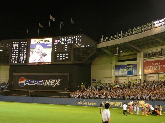 しかし、期待を裏切らない今の救援陣 ど真ん中に投げ 代打宮出に同点本塁打を撃たれ・・・続く鉄平にも連打され 「川崎 おまえもか・・」