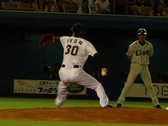 8回渡辺俊の作ったピンチを伊藤が抑えに行きます