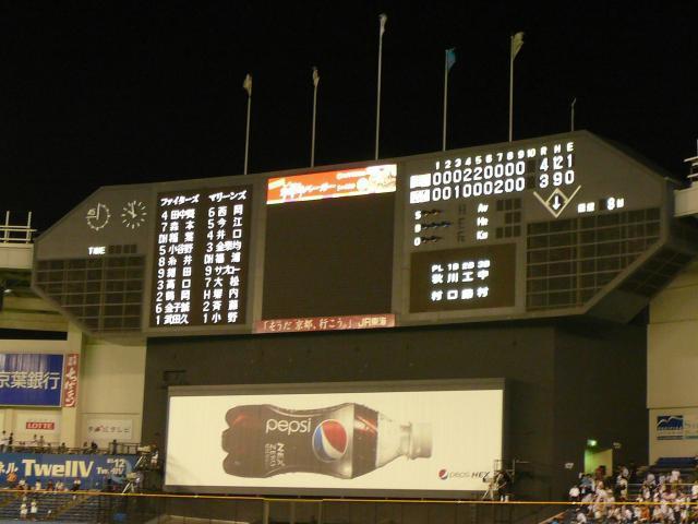 ロッテは8回余裕をかまして勝ちパターンをつぎ込まず加藤武をつぎこんだので左の代打攻勢で追い上げ9回も怖くない守護神武田久から斉藤がめずらしくヒットを打ち一打同点長打逆転まで行ったが
