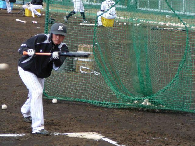 メイン球場では金澤がバント練習 この角度はシーズン中はめったに見れません たぶん キャンプ中ならではです。