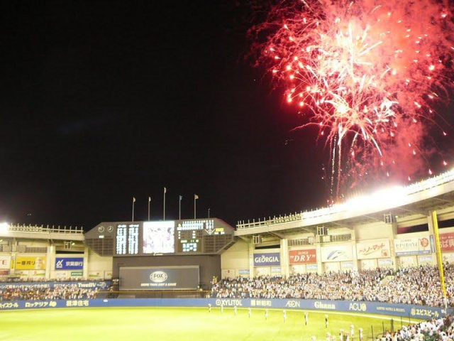 7回風で打ち上げられなかった花火・・試合終了後弱まり打ち上げる心意気も・・