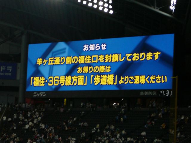 試合後に熊のような物体の目撃があり一部出口を封鎖しています