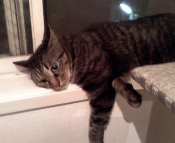 まだよちよち歩きのにゃん子を窓から見届けることしかできず、
