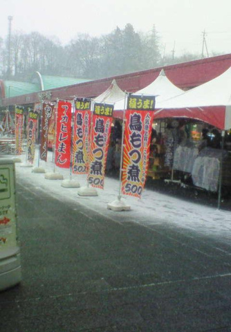 談合坂サービスエリア。 雪ハンパない( ̄□ ̄;)!!目的地に無事着けるのか? ちと心配です(;^_^AY氏の呪いが。。。