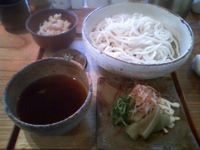 上の写真は「きんぴら薬味うどん」(きんぴらと茄子、九条葱など、五種の薬味)880円。