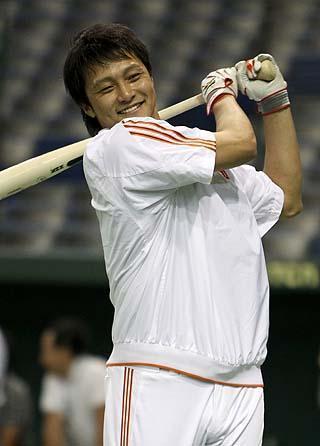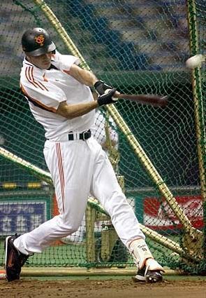 打撃練習での越智。