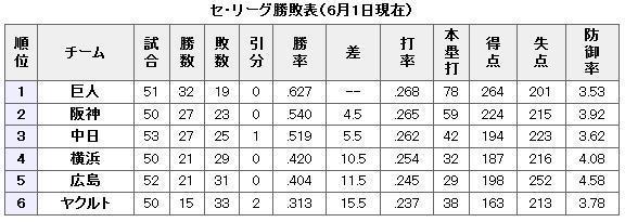 セ・リーグ首位でございます。(汗